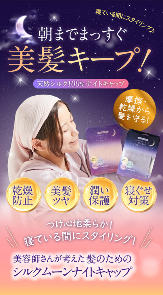 そこでおすすめ品として紹介されていたシルクのナイトキャップ、ハホニコのシルクmoonナイトキャップ。